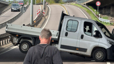 Skurriler Unfall auf der A620 – Transporter steckt in Baustelle fest